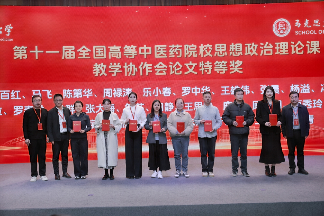 2025年11月29日至30日,全国高等中医药院校思想政治理论课建设经验交流暨第十一届教学协作会议在南京隆重召开。本次会议以“学习贯彻习近平总书记对学校思政课建设的重要指示精神,坚持‘两个结合’,突出中医药文化特色,推动思政课内涵式发展”为主题。我校马克思主义学院邱仁富院长带队,胡兵、荣文丽、马晓慧、吕薇、蔡祎、郭百红7位老师参加了此次会议。